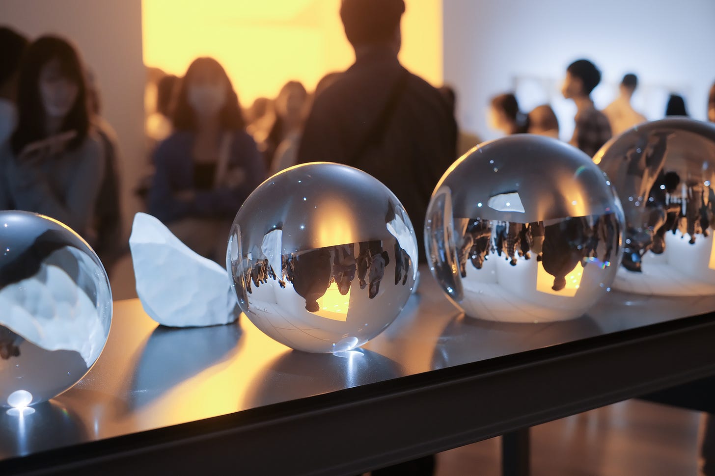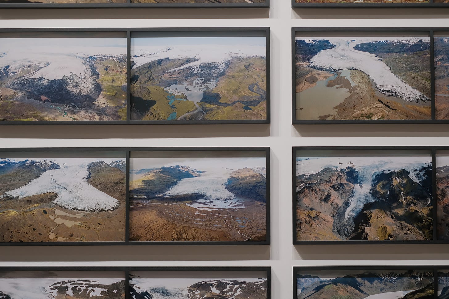 雖然人真的很多,但展覽也真的有趣。我們在電扶梯旁邊盯著旋轉的電風扇和灑在地上的光影(和持續排隊的人潮);在《單色房間》裡覺得眼睛是不是會壞掉;看著冰河的系列照片,又想起自己曾看過的冰河。