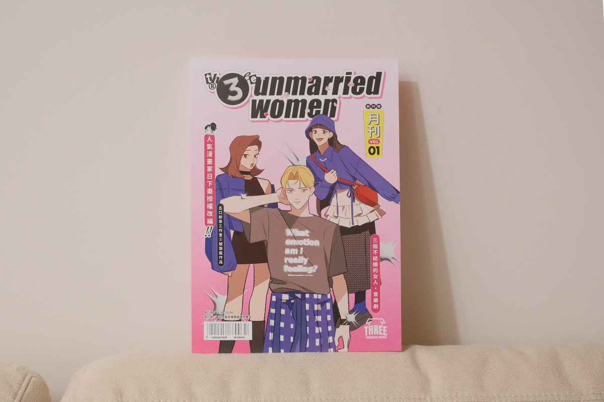 《三個不結婚的女人》是從日下棗老師的漫畫改編。故事圍繞著不結婚的王家三姐妹:大姐思榕(♪榕哥♪)是基層員警,二姐思彤是嘴巴超壞的美妝 Youtuber,小妹思瑜是戲劇系畢業、正在努力往夢想前進的超卡哇腐女,還有人見人愛的狗勾小巴。