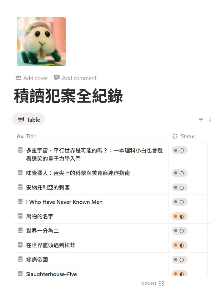 📍 積讀(積ん読):是指書本僅藏不讀或只囤不讀的狀態(維基百科)