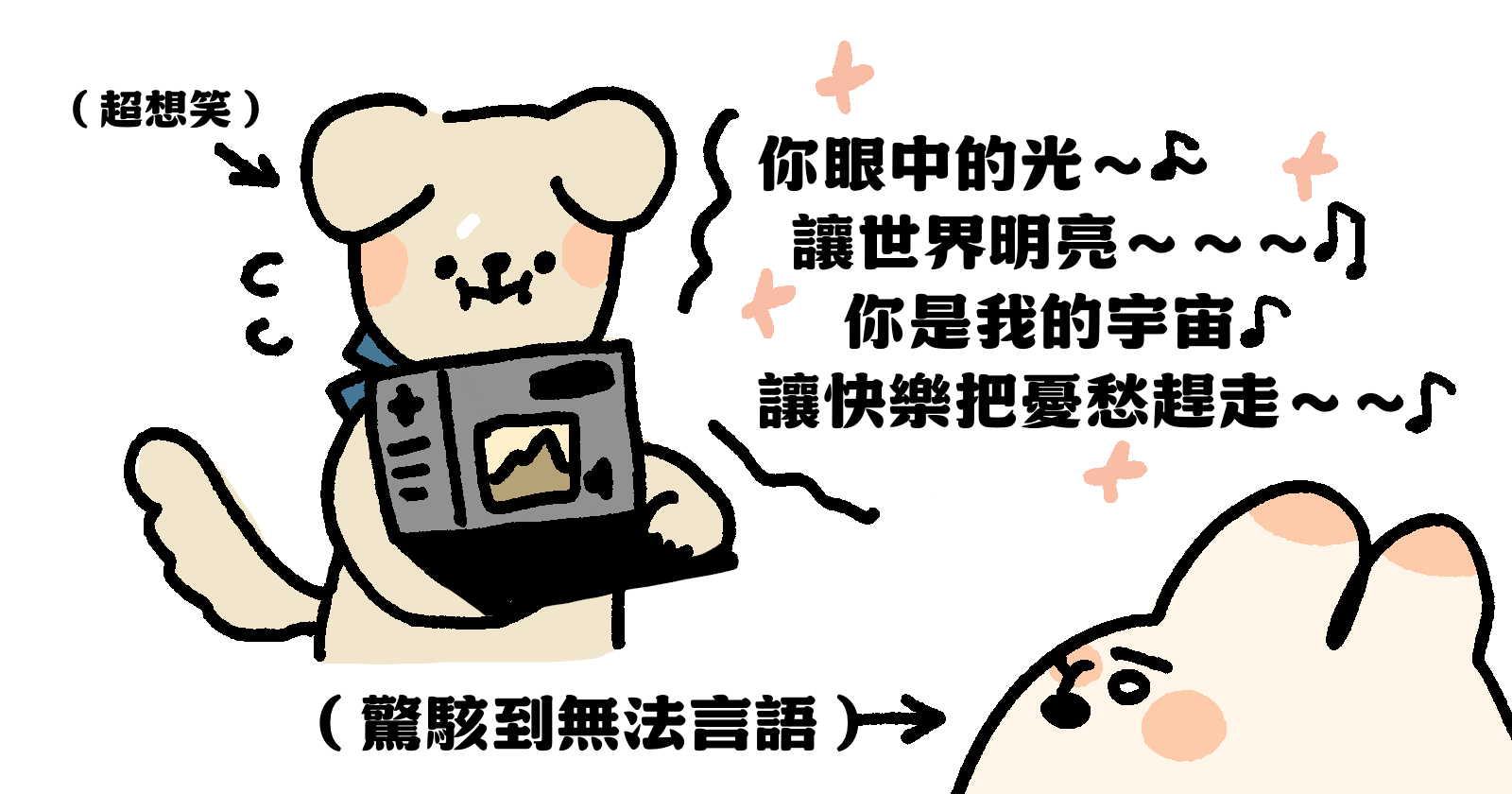 要低情商の家犬鼓勵別人,是一件相當困難的事,他可以解決問題,但常常會跳過照顧情緒的步驟。一直以來,如果我心情不好,他能做到慌慌張張地說「沒事啦🥺」、「不要煩惱嘛🥺」搭配裝可愛,就差不多是極限了。